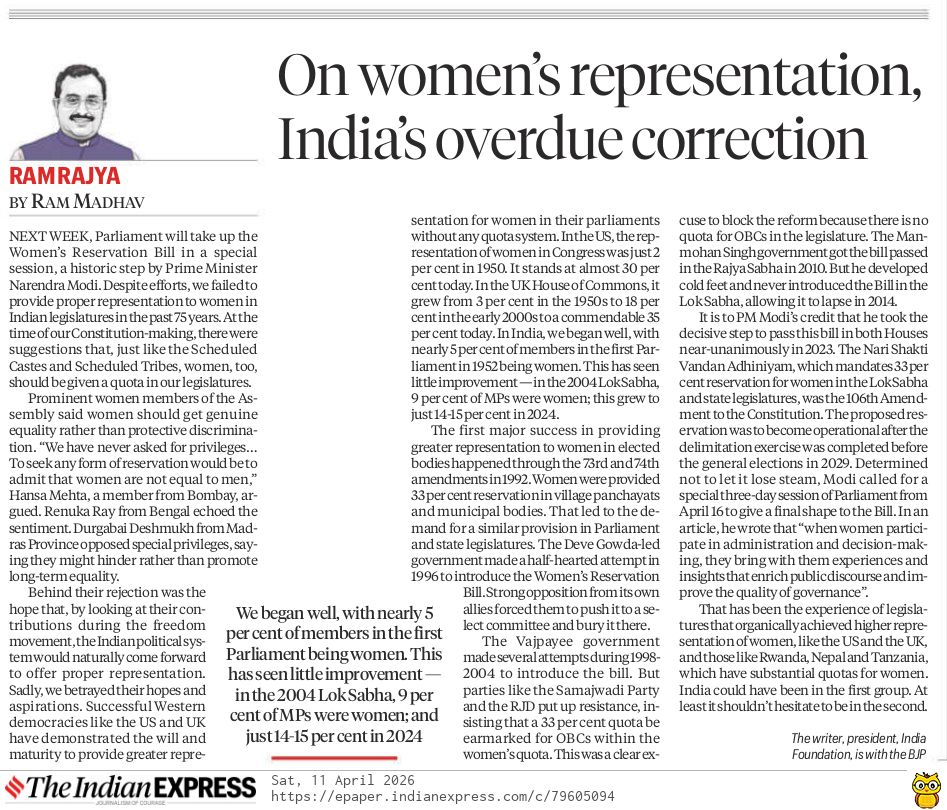 (The article was originally published in Indian Express on April 11, 2026 as a part of Dr Madhav’s column titled ‘Ram Rajya’. Views expressed are personal.)