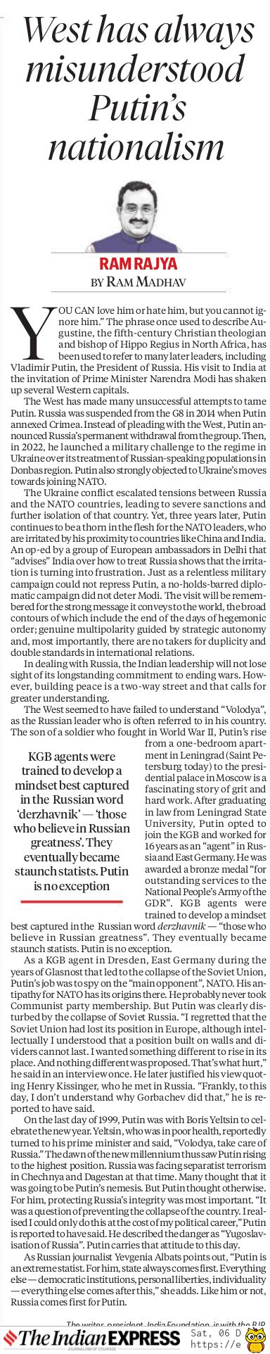 “You can love him or hate him, but you cannot ignore him” – The phrase was once used to describe Augustine, the 5thcentury Christian reformist theologian and bishop of Hippo Regius in North Africa, for his articulation on the concept of “grace”. It came to be attributed to many leaders in later centuries. One such leader is Vladimir Putin, the President of Russia. On his tenth visit to India on the invitation of Prime Minister Narendra Modi, who extended a red-carpet reception to the visiting leader, Putin created not just ripples but waves in several Western capitals.