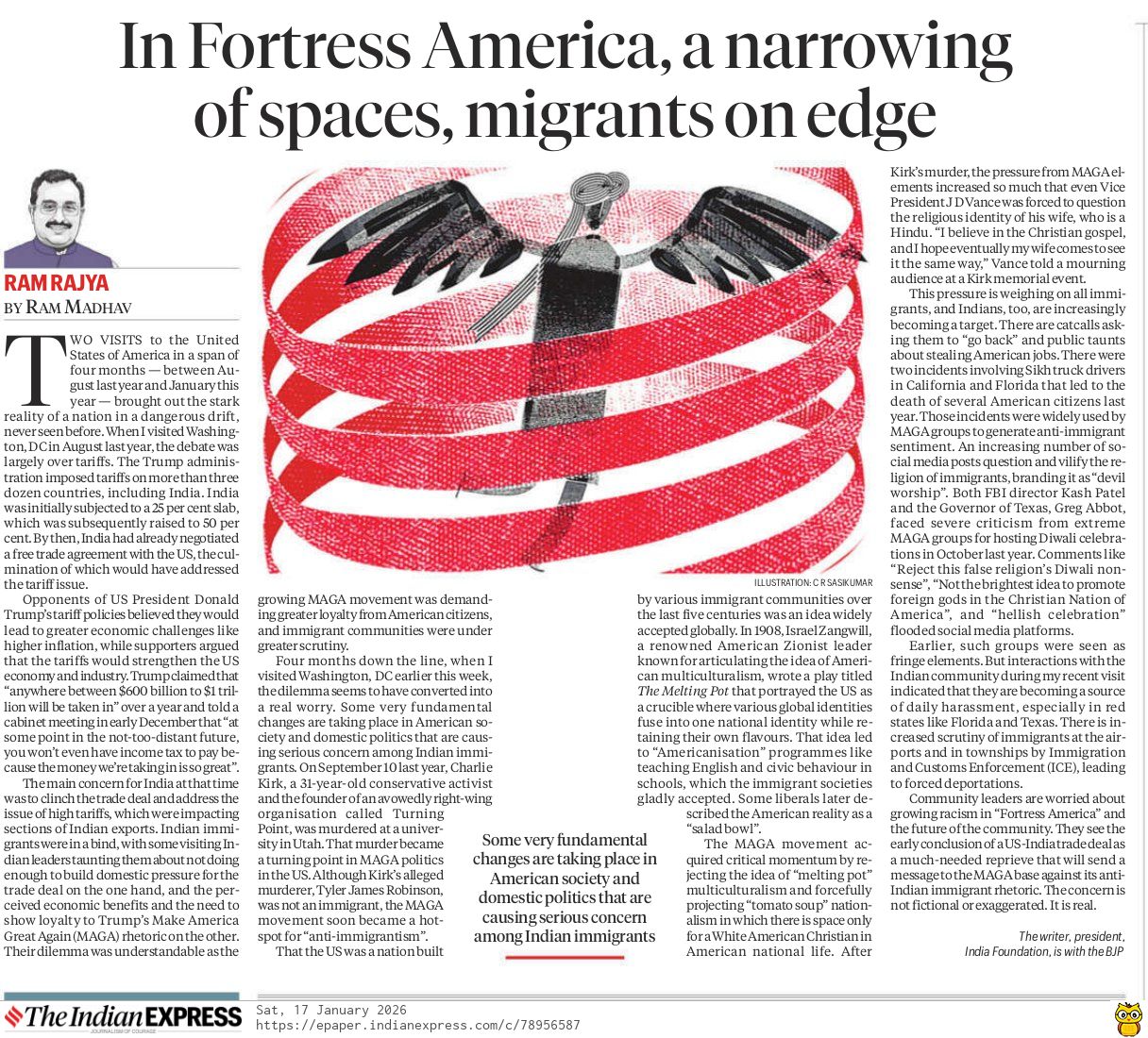 (The article was originally published in Indian Express on January 17, 2026 as a part of Dr Madhav’s column titled ‘Ram Rajya’. Views expressed are personal.)