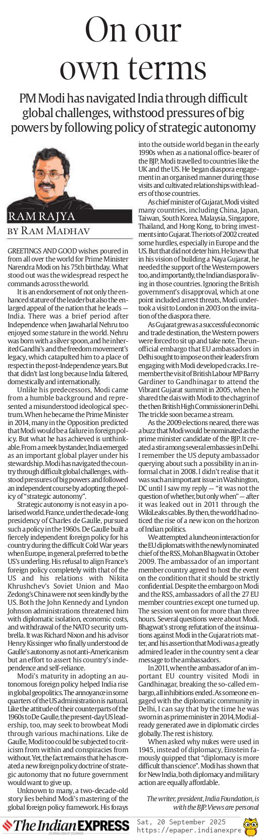 (The article was originally published in Indian Express on September 20, 2025 as a part of Dr Madhav’s column titled ‘Ram Rajya’. Views expressed are personal.)