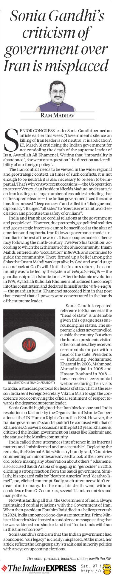 Senior Congress leader Sonia Gandhi penned an article in these columns earlier this week criticising the Indian government for not condoling the death of the supreme leader of Iran, Ayatollah Ali Khamenei. Accusing that “impartiality is abandoned”, Sonia went on to question “the direction and credibility of our foreign policy”.