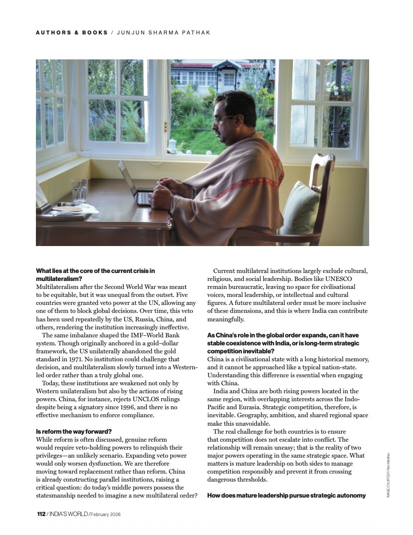 “One area where I could have gone further is articulating India’s precise role in that future order. Given my current political responsibilities, there are limits to how far I can speculate. As a purely academic exercise, that question deserves much deeper exploration and perhaps a future book.”